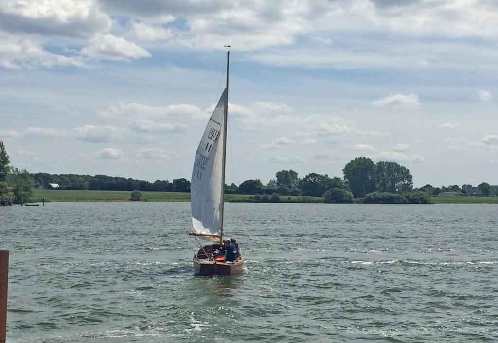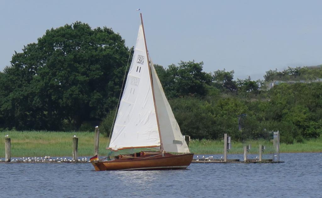 Sehr gepflegter Jollenkreuzer in Mahagoni natur lackiert, stehendes Gut in 2016 erneuert, Holzmast neu in 2016, Jütbaum neu in 2014, Mastfußsystem neu in 2012 ( Ausgleich der Luvgierigkeit ), Großsegel neu in 2016, Genua III neu in 2016 ( wenig genutzt )